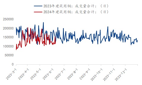 以樣本企業(yè)成交量數(shù)據(jù)來看, 剔除春節(jié)前后假期影響,2024年建筑鋼材成交量普遍低于2023年水平,尤其5月份相比去年同期,成交明顯縮量,成交持續(xù)走弱也佐證了供給端的壓力愈發(fā)明顯,主動(dòng)減產(chǎn)的常態(tài)化。